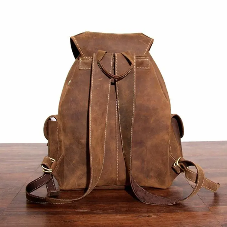 Looking for a backpack that combines a rugged aesthetic with effortless style? Look no further than The Asmund. Providing a certain bohemian allure, this bag appears to have done it all and is ready to do it all again; able to compliment any outfit on a casual day out or for a long adventure. It has a large capacity, suitable for storing laptops and other gadgets, along with other day-to-day items, all secured safely with drawstring closure and buckled leather flap. The crazy horse leather has a smooth texture, delicate to the touch, but extremely durable and weather resistant. The shoulder straps are designed for easy adjustments to your comfort, all included straps are genuine leather, as well as the exterior pockets attached to the main compartment – allowing for further storage and efficient accessibility. Getting out there has never been made easier.